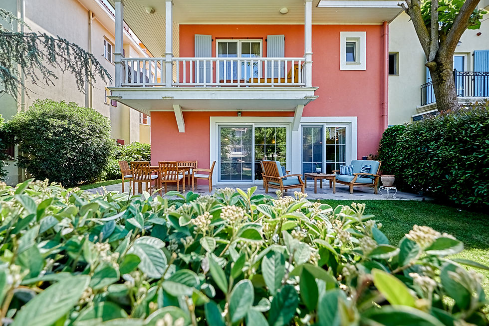 Projenin öncelikli sorunu bahçeyi evin içinde olabildiğince çok hissedebilme isteğiydi. Binanın cephe konseptindeki tarza aykırı bir çizgiye çıkmadan salonun bahçeye bakan cephesi büyük oranda yırtılarak bahçeyle birleştirildi. Teras sert zemin alanı arttırıldı ve yepyeni bir ruha sahip malzemeyle kaplanarak görsellik zenginleştirildi.